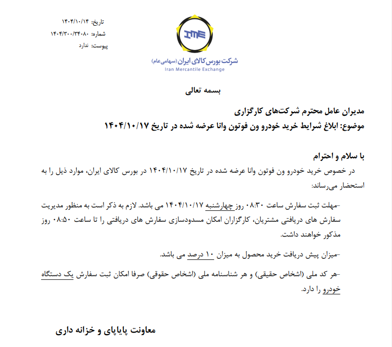 جزییات عرضه های آتی تالار خودرو به شرح زیر است: